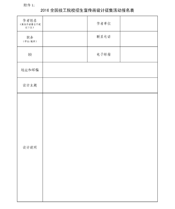 1.2016全国技工院校招生宣传画设计征集活动报名表;