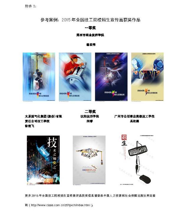 2.参考案例:2015年全国技工院校招生宣传画获奖作品。