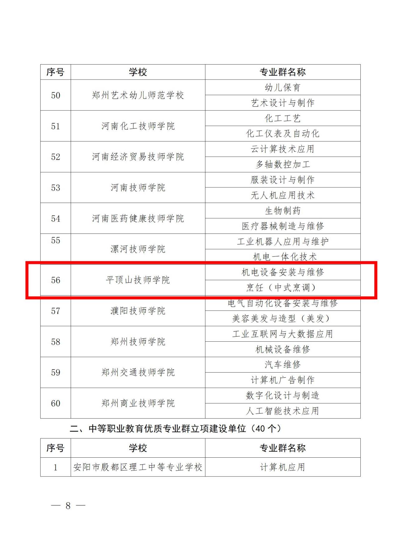 按照“中职双优工程”建设要求,学院将完善细化建设方案,明确攻坚任务分工,将以机械设备安装与维修专业群和烹饪专业群为抓手、全力打造河南省职业教育一流专业群,为平顶山市产业转型升级、经济高质量发展输送更多高素质技术技能人才。