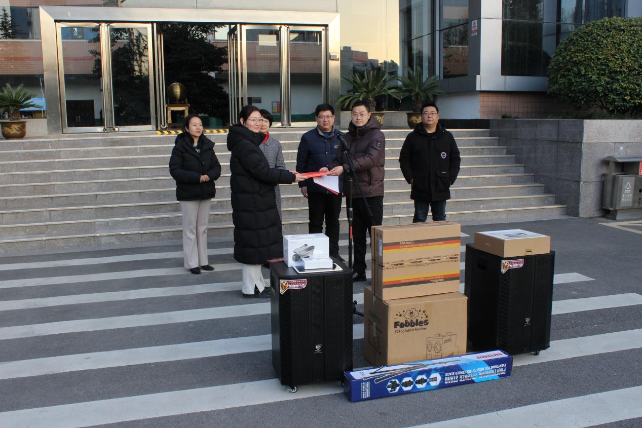 徐加能先生表示,“企业发展了,就该反哺校园,承担社会责任。为感谢学校的支持,我们自愿向院团委捐赠一批学生活动器材,希望能为同学们搭建更广阔的展示舞台,助力大家德智体美劳全面发展。这份心意,是我们对学校支持的感恩,也是对同学们成长的期许。”