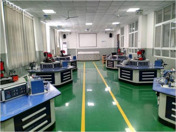 实训楼二楼,“一体化教学、机械装调技能工作室”,涵盖机械设备安装与控制,机械设备装调,“一体化机械装调实训教室”和“一体化机械设备维修基础实训教室,在传统的机修钳工、装配钳工、工具钳工、钳焊工(复合专业)等工种的基础上又增加了新的内涵。