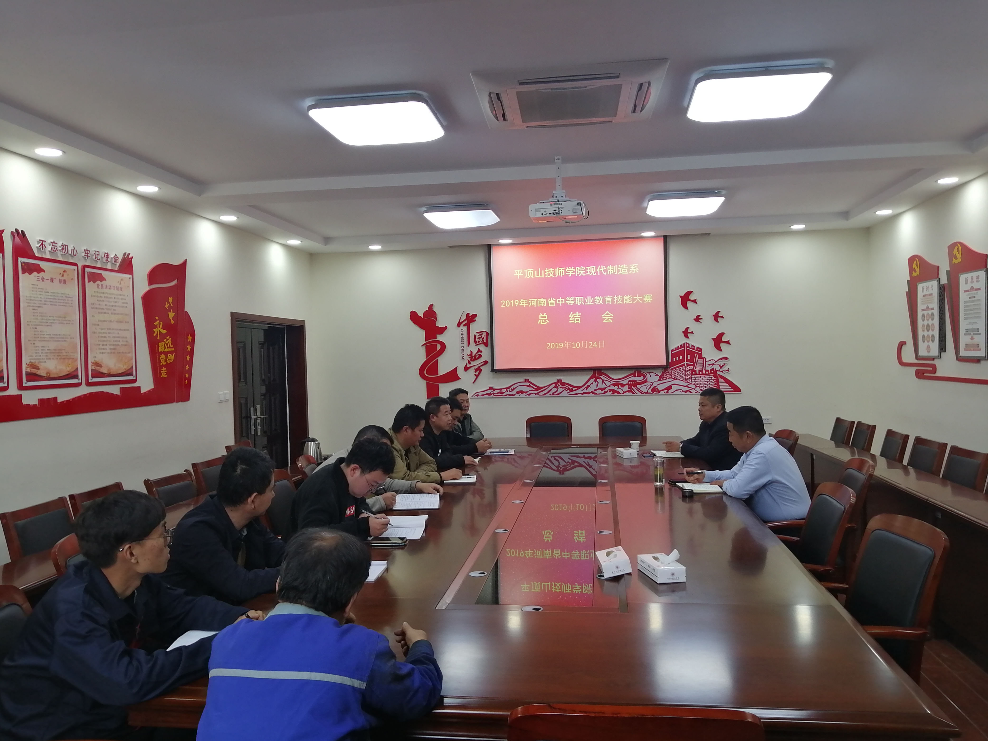 2019年河南省中等职业教育技能大赛我系参赛赛项已全部结束,为及时总结经验、查找不足,10月24日下午15:00,我系在科技楼三楼会议室召开省中职技能大赛赛后总结会。会议由系主任时小广主持,院长助理秦建中、系部各赛项指导教师参加本次会议。