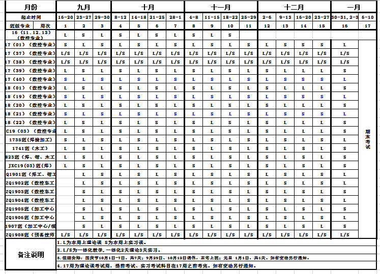 平顶山技师学院2019/2020学年第一学期教学进度表(现代制造系)