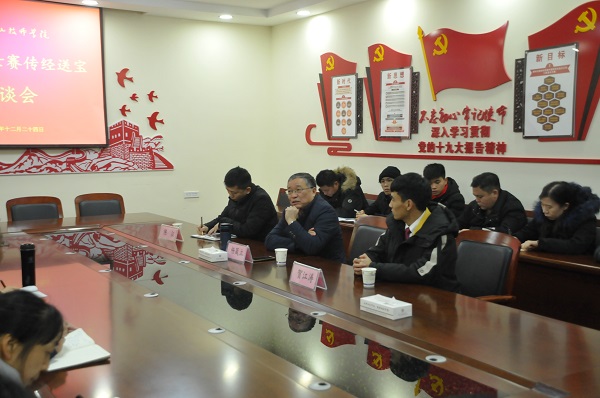 交流会结束后,杨院长、陈教练及贺江涛与我院各系部技能竞赛教练进行了座谈。首先,张院长对杨院长一行人的到来表示热烈的欢迎,祝贺他们在世界技能大赛上取得了优异的成绩,并感谢他们到学院为我们的教练和选手传经送宝。随后杨箴立院长、竞赛教练陈征分别发表讲话,他们从竞赛训练方法、选手选拔、选手训练过程、后勤保障、竞赛规则等多个方面毫无保留的向在座教练传授经验。会议最后张院长对杨院长再一次表示感谢,竞赛教练们纷纷表示此次座谈受益匪浅,为下阶段的竞赛训练提供了新思路,指明了改进方向。