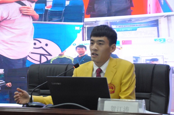 交流会上,贺江涛讲述了他是如何从一名普通的专业学生一步步走向世界的舞台。凭借着对专业的兴趣和刻苦努力的态度,被学院竞赛团队选中,为了提升专业技能,学院领导多次邀请专家到校为自己指导,多次带领自己到经验丰富的单位去学习,加之自己乐此不疲的刻苦训练,就这样技能水平不断地提升,以世界技能大赛全国选拔赛第10名的成绩入选国家集训队,最终又通过层层严格的选拔成为中国代表队工业控制项目正选选手。代表中国在世界技能大赛的舞台取得了优异的成绩。他指出作为竞赛选手要想取得优异成绩,选手自己要有自觉自愿的干劲和兴趣、打破砂锅问到底的钻劲、百折不挠的韧劲、迎难而上的倔劲,当然除了自己努力,还离不开从教练的悉心指导和学校的大力支持。