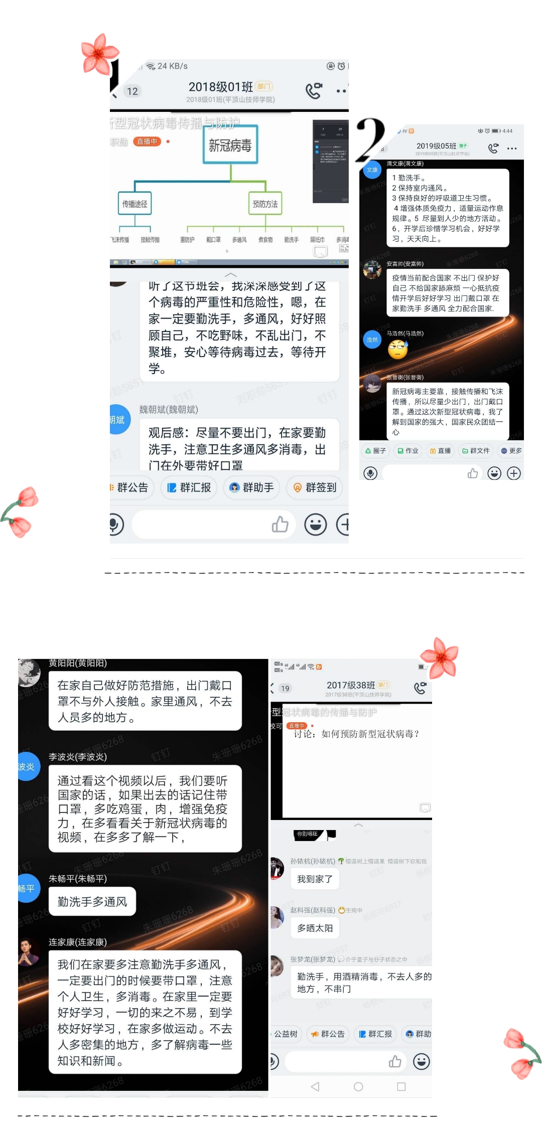 通过本次班会,同学们纷纷表示了解到疫情的严重性,也感受到自己身上的责任,“国家兴亡,匹夫有责”,我们与祖国同呼吸共命运,切实做好自身防护,与祖国共抗疫。