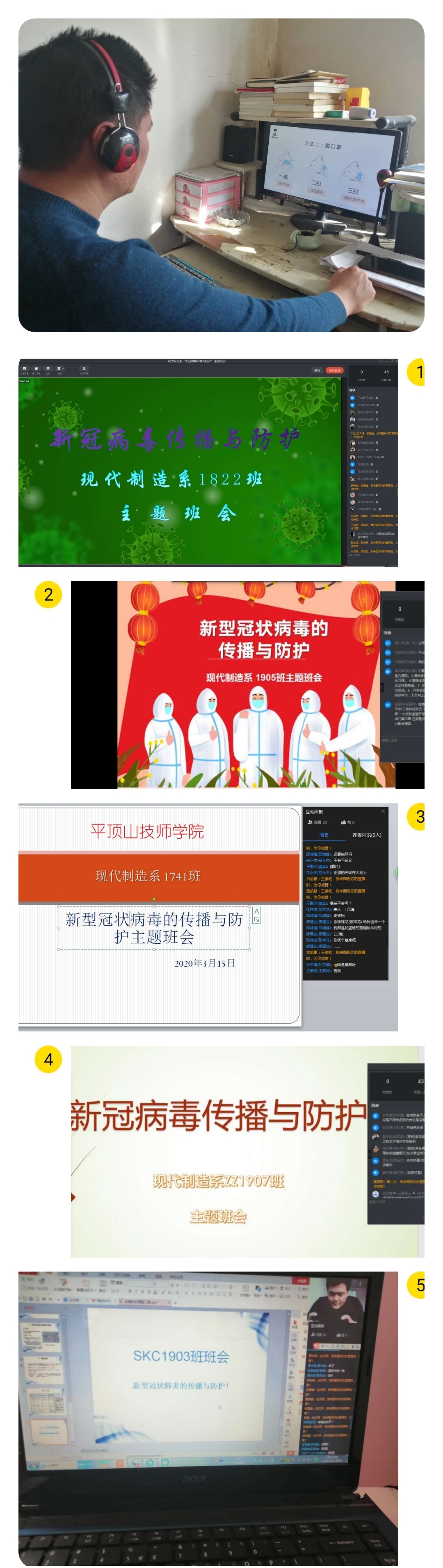 3月15日下午4点,现代制造系落实学院疫情防控安排,组织召开“新型冠状病毒的传播和防护”网上主题班会。
