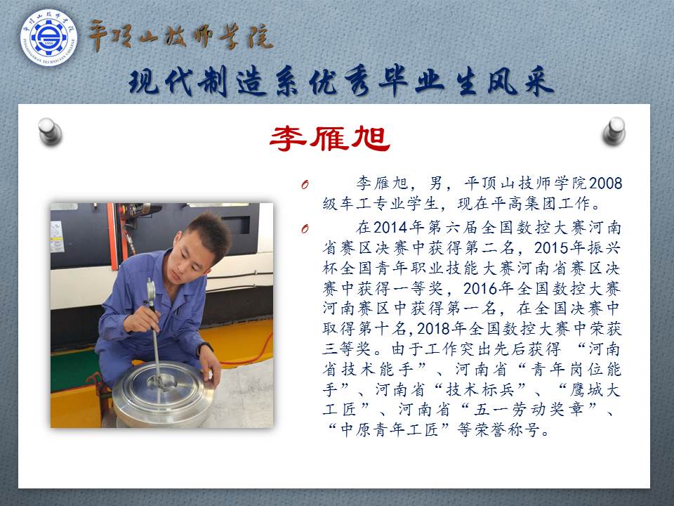现代制造系优秀毕业生——李雁旭