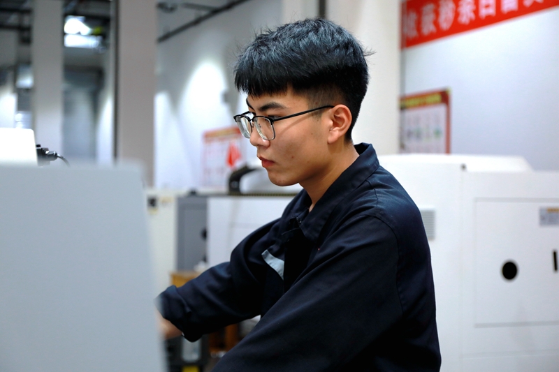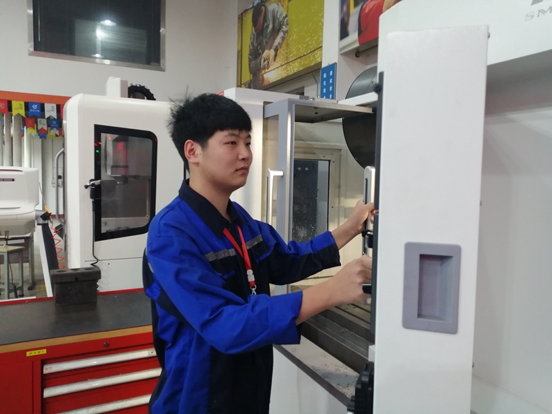 数控车项目获得第一名王子壮同学,本分实在,平时不善表达,干活踏实冷静,不急不慢,心态很好,每天勤学苦练训练到深夜。曹二文、陈春光两位辅导老师,精心设计训练方案,遇到问题群策群力。每天常规训练都做到了“训练开始有安排,训练过程勤辅导,训练结束有总结”。指导老师对王子壮的操作过程实施全程监督,使用三坐标、粗糙度仪高端仪器检测工件,训练工具与器械全部与国际大赛接轨。第二梯队学生选手密切配合,承担大量辅助性工作,为王子壮提供更多时间精力来钻研技术。为最大限度降低心理因素对选手技能水平的影响,各项目对接世界技能大赛标准,对选手进行定期模拟考核,使选手在赛场上能更好更快的进入到最佳状态。学院组织优秀教师,从心理、体能、 技术等多层面进行介入,提高选手适应不同环境的应变能力。
